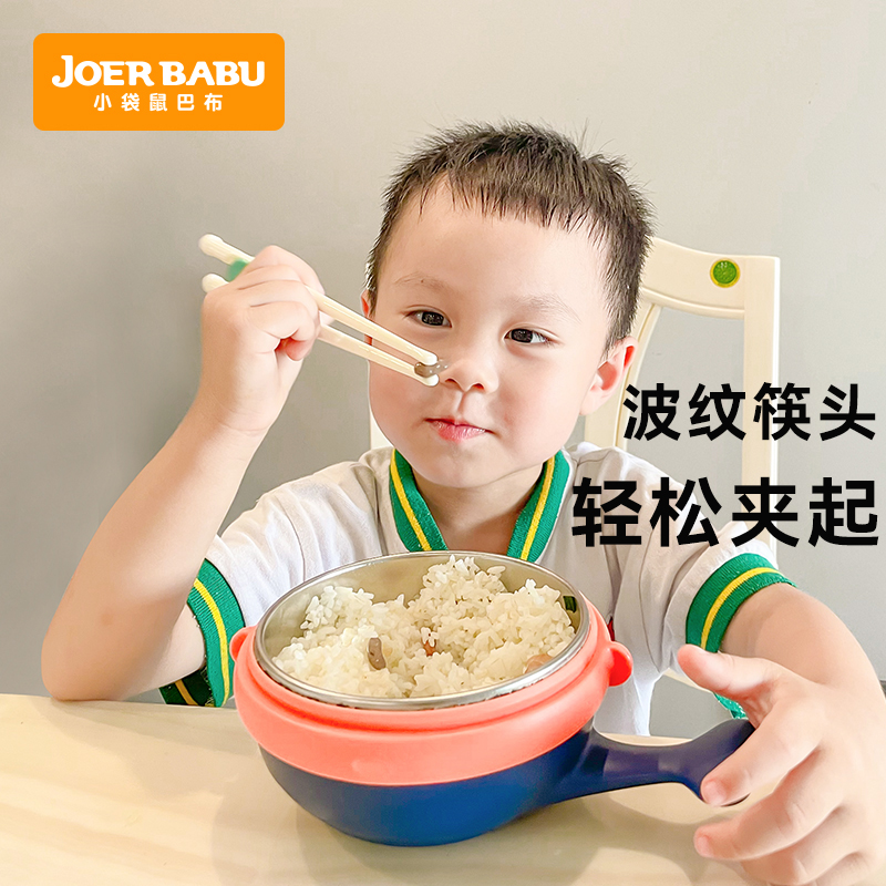 小袋鼠巴布儿童筷子虎口训练筷宝宝学习筷2-3一6岁幼儿园专用餐具