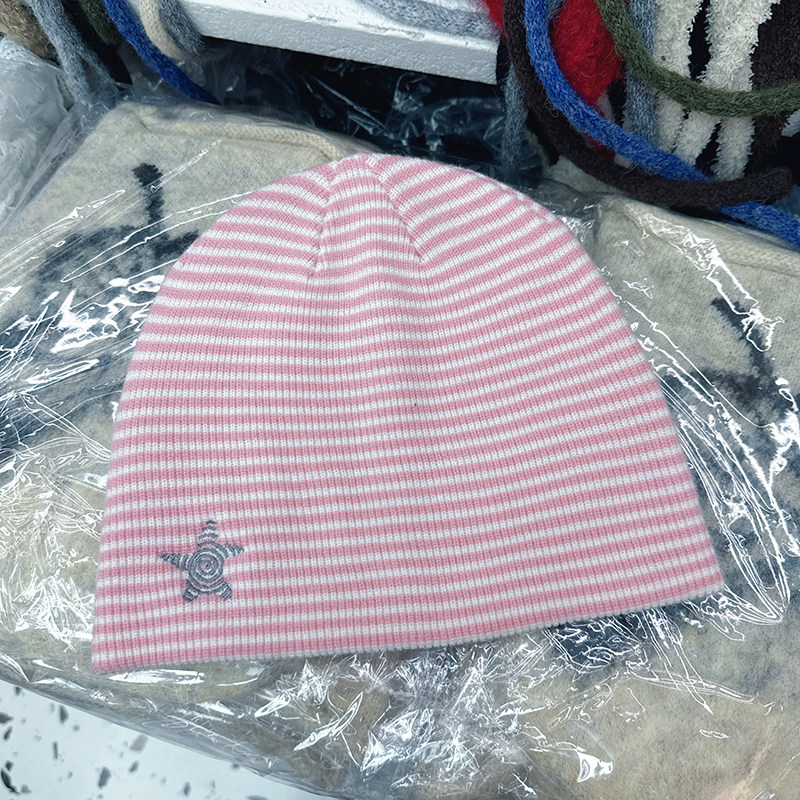 韩国代购东大门秋冬新款韩版条纹星星针织冷帽ins复古百搭堆堆帽