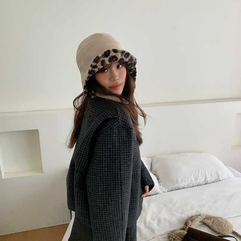 韩国代购东大门冬季新款灯芯绒豹纹拼接雷锋帽女甜美骑行护耳帽子