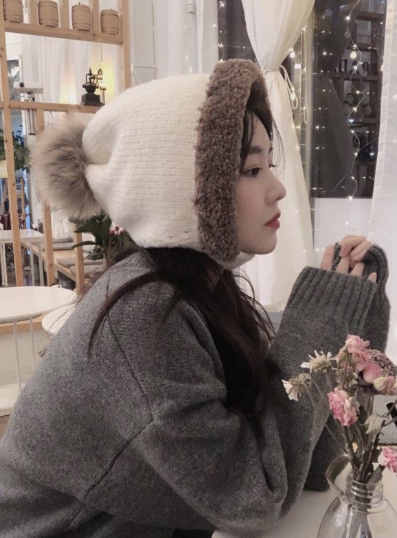 韩国东大门代购秋冬新款时尚大毛球保暖护耳显脸小毛线帽针织帽子