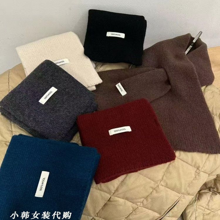 韩国东大门代购秋冬新款ins同款100wool羊毛纯色流苏围巾保暖围脖