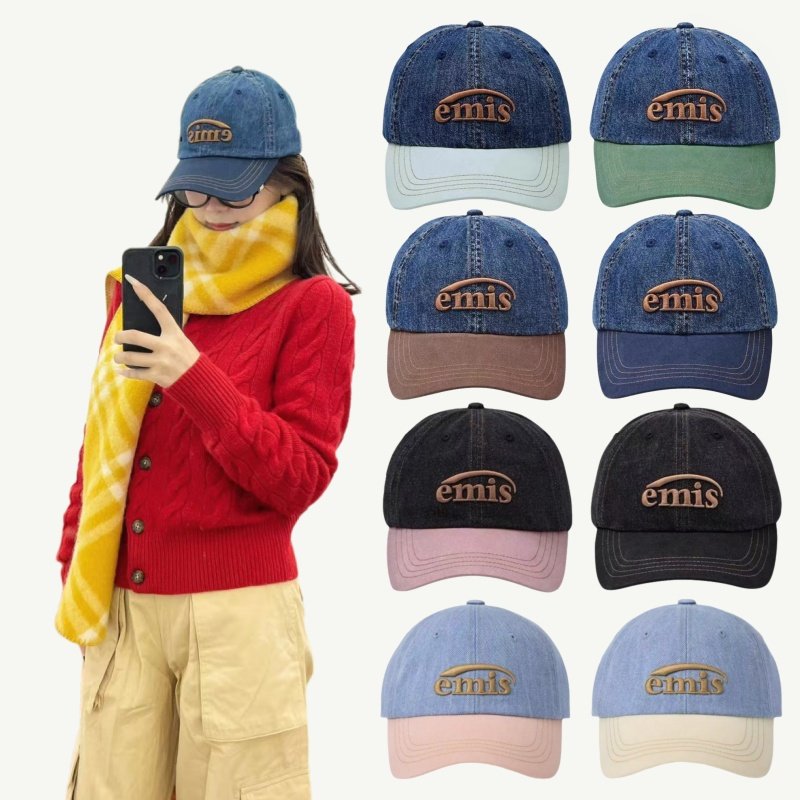 韩国代购emis新款拼接牛仔帽女大头围显脸小棒球帽情侣百搭鸭舌帽