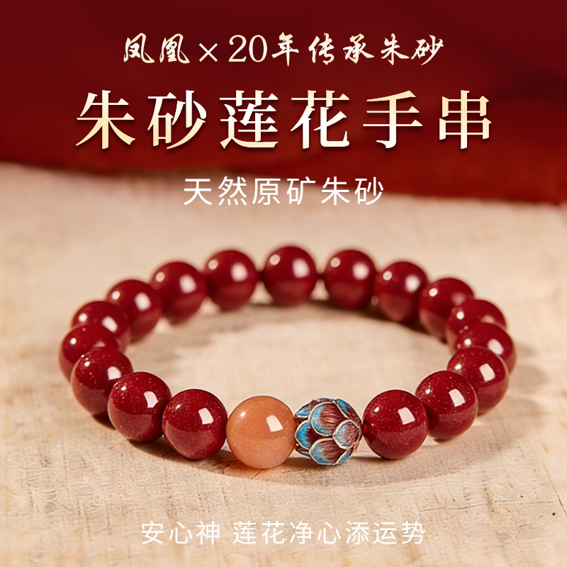 庆祥泰真品朱砂莲花手串正品官方旗舰店天然原矿女款手链生日礼物