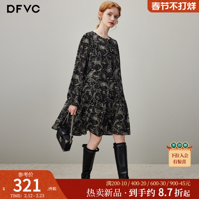 dfvc复古碎花春装连衣裙女2026年春季新款宽松小个子长袖连衣裙