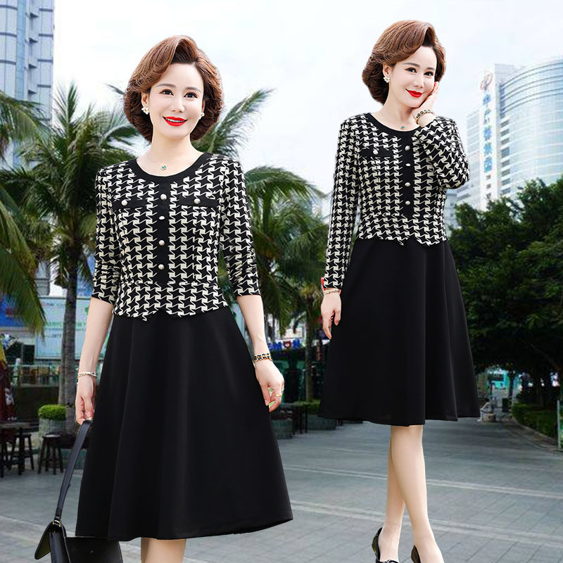 妈妈春装连衣裙女2023新款洋气中老年春秋长袖显瘦气质两件套裙子