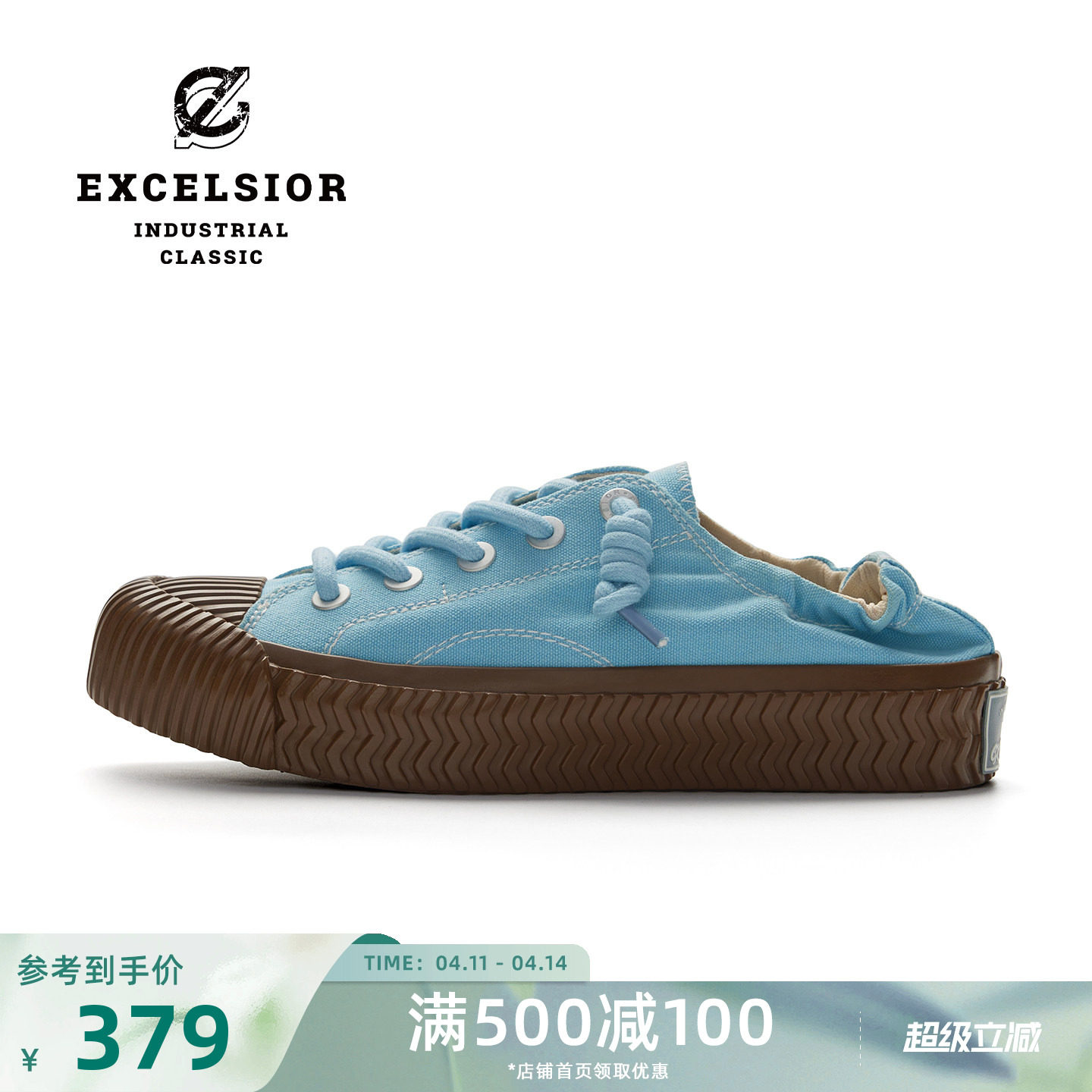 【双马尾系列】excelsior饼干鞋 蓝色女鞋厚底板鞋一脚蹬帆布鞋