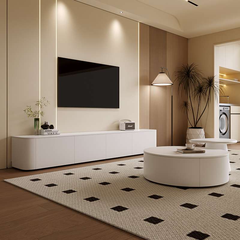 帕沙曼茶几落地电视柜组合白色极简奶油风客厅家用小户型方形新款
