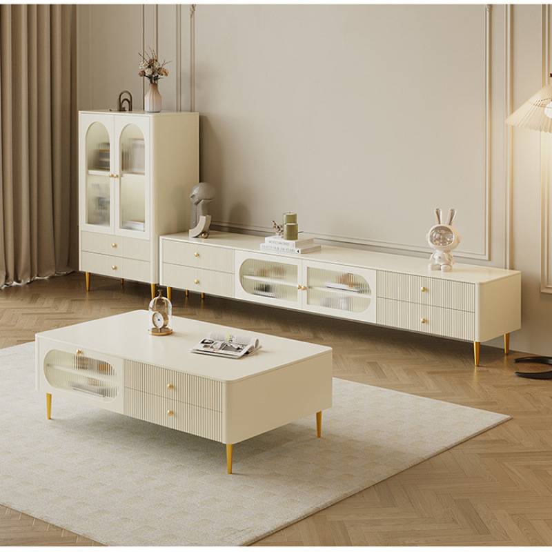 美式简约客厅电视柜茶几组合落地地柜储物柜小户型奶油白色收纳柜
