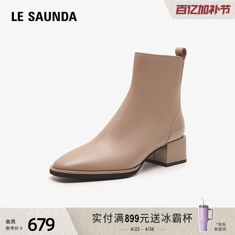 星期六粗跟短靴女款2025新款冬季加绒英伦风方头堆堆靴百搭西部靴