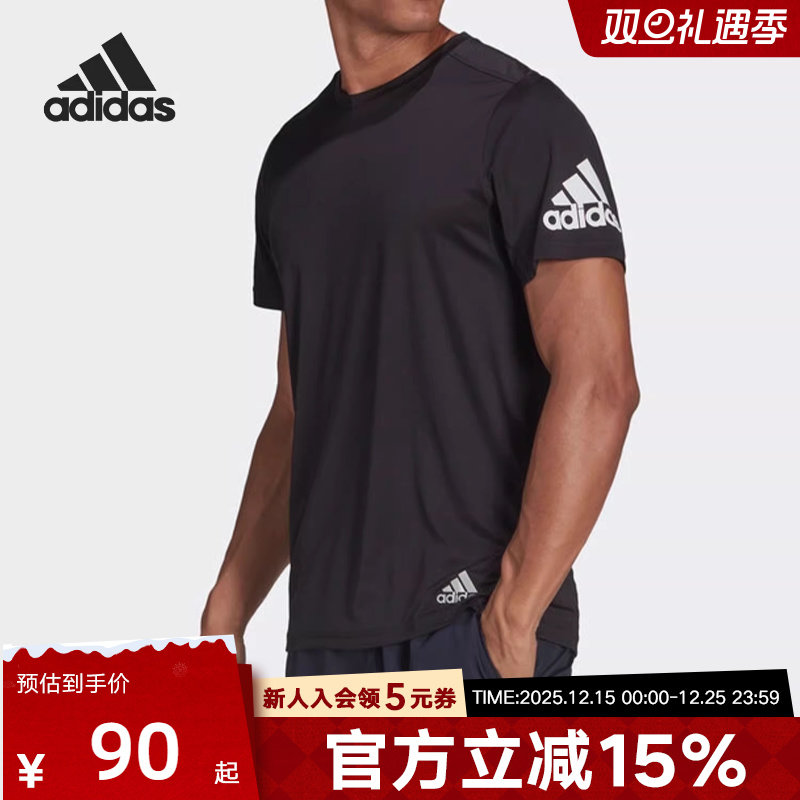 阿迪达斯短袖男2025冬季新款黑色速干半袖上衣圆领透气运动T恤男