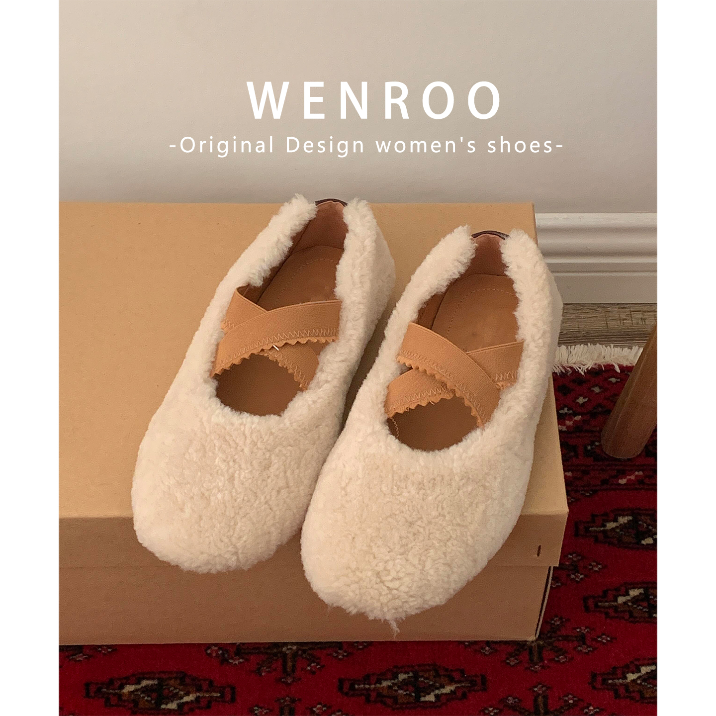 EBLAN/伊伴羊羔毛毛鞋女2025秋冬新款平底单鞋加绒保暖休闲德训鞋