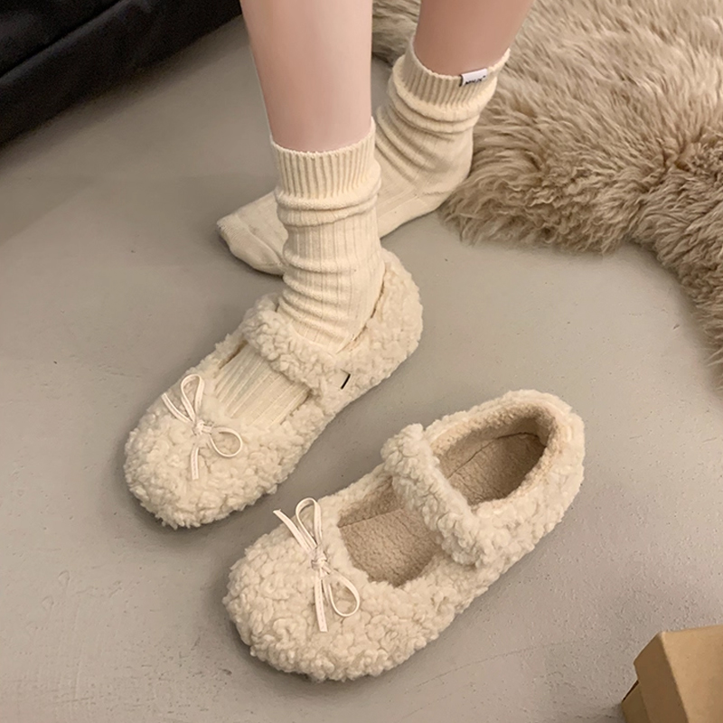 仙女风平底毛毛鞋女外穿2025秋冬新款蝴蝶结加绒保暖豆豆棉鞋瓢鞋