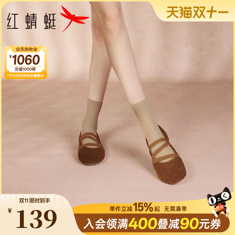 红蜻蜓毛毛鞋女秋冬新款一脚蹬女鞋平底豆豆单鞋软底毛绒玛丽珍鞋