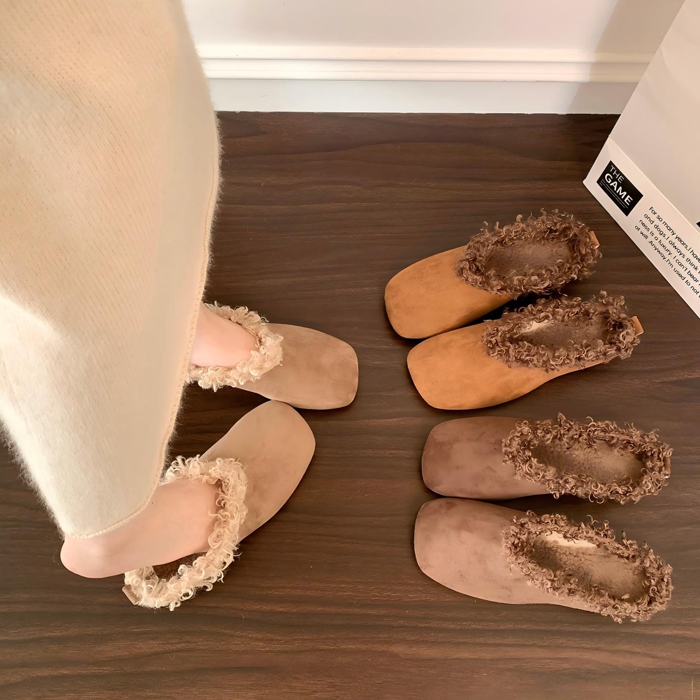加绒保暖复古平底毛毛鞋女外穿休闲鞋2024秋冬款软底舒适豆豆棉鞋