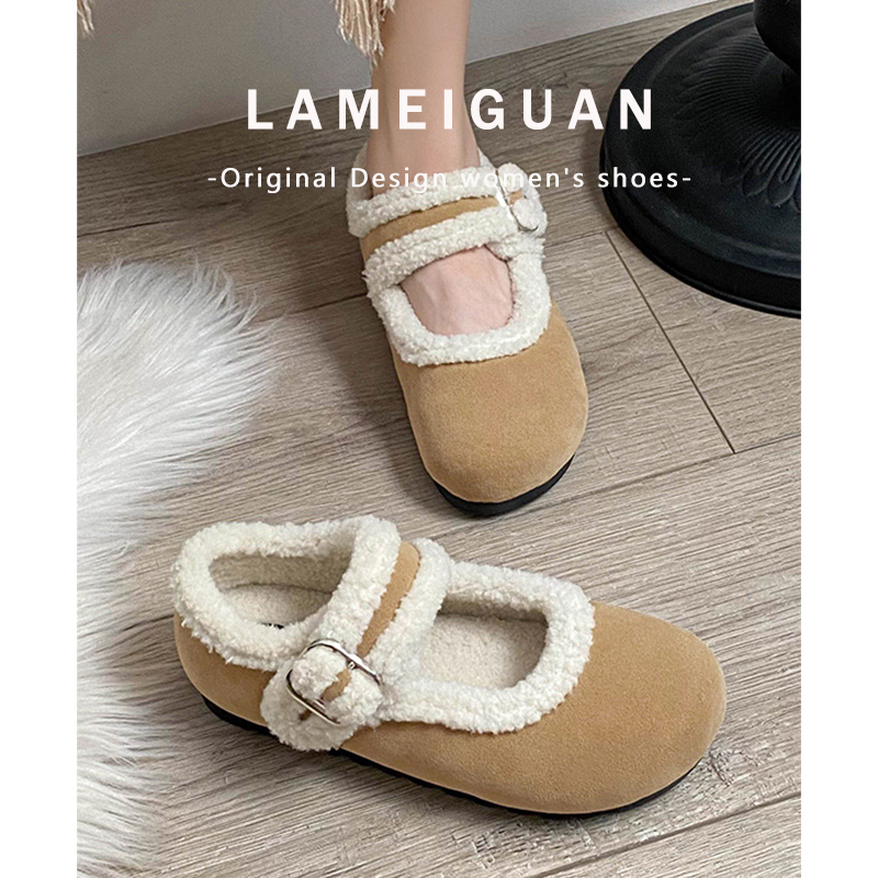 甜美平底加绒勃肯雪地棉鞋女外穿2025秋冬新款浅口玛丽珍毛毛鞋子