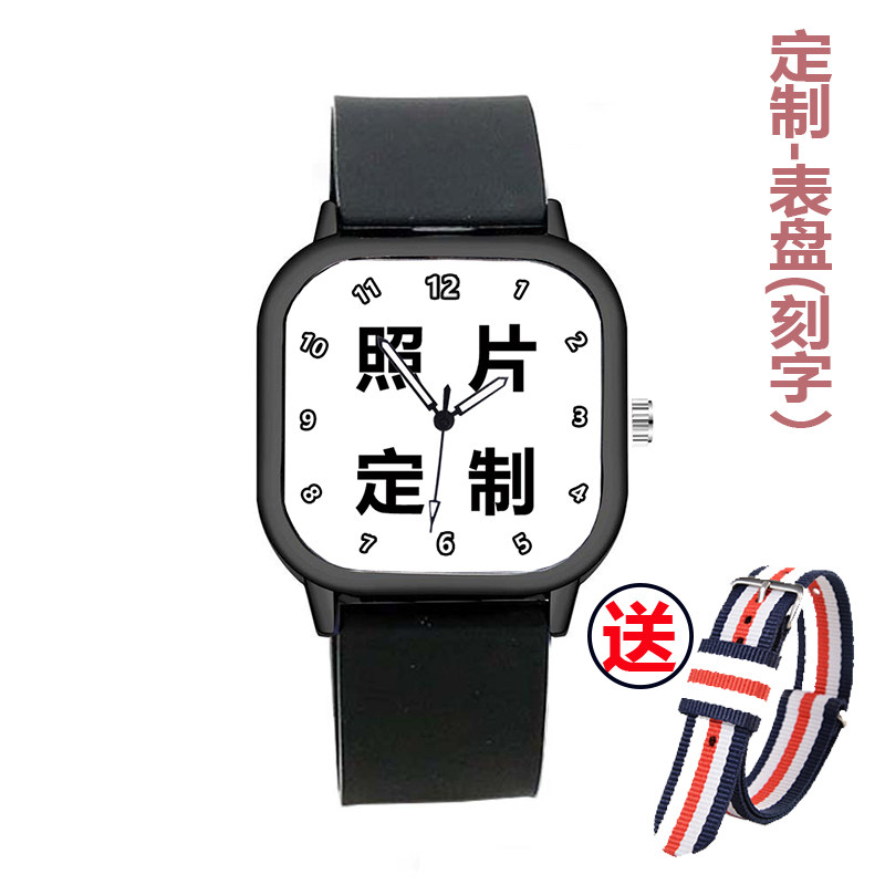 DIY数字方形手表男女学生初中生照片订制刻字情侣来图生日礼物表
