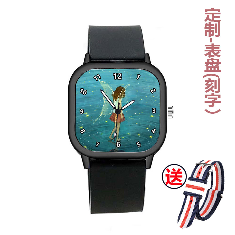 蝴蝶仙子方形手表男女学生初中生照片订制刻字情侣来图生日礼物表