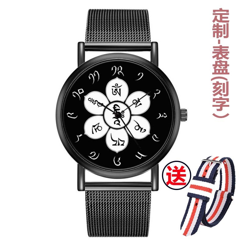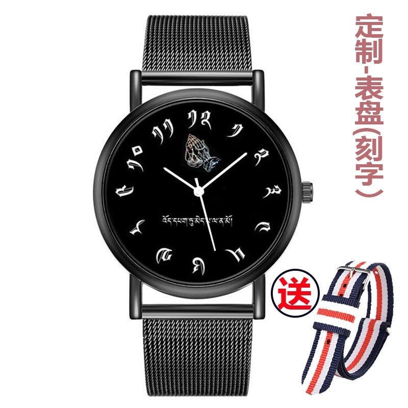六字真言藏文数字表来图定制手表男女情侣纪念生日礼物刻字石英表