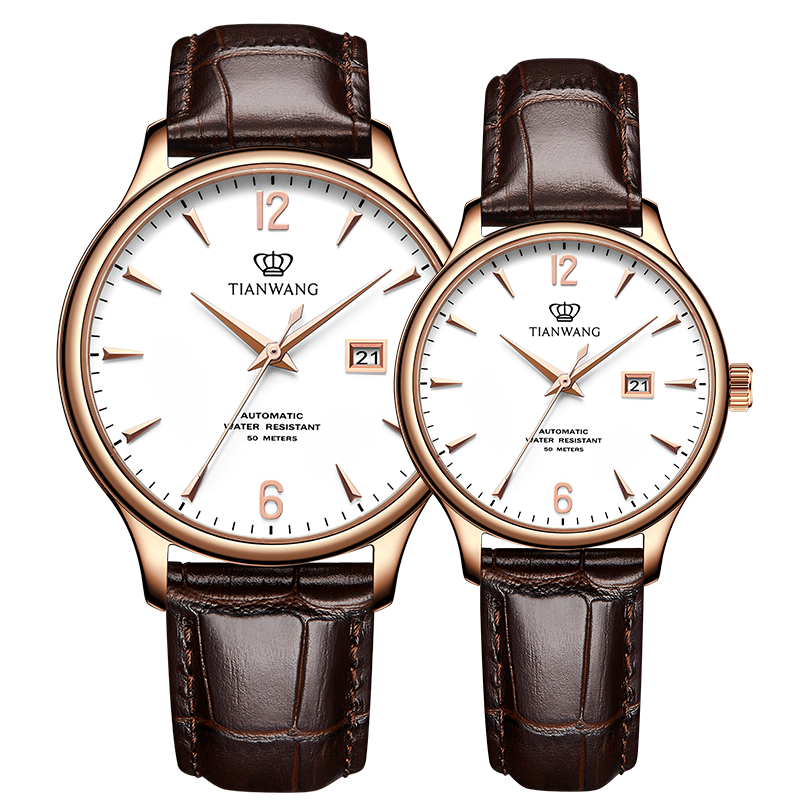 【免费定制刻字】天王表皮带机械手表时尚休闲情侣表男女对表5844