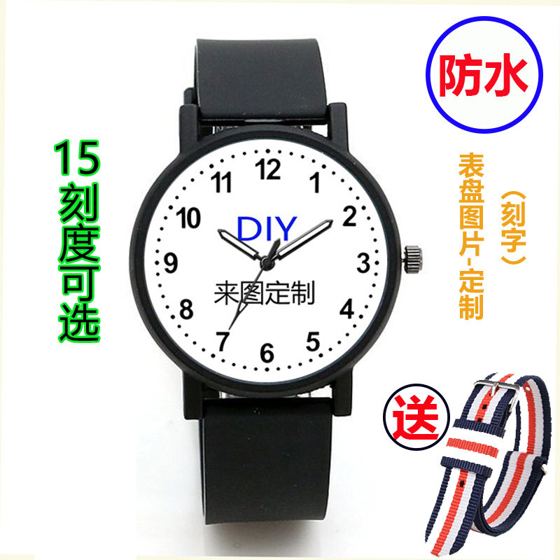 DIY手表女学生可印照片刻字定制情侣一对来图定做logo男生日礼品
