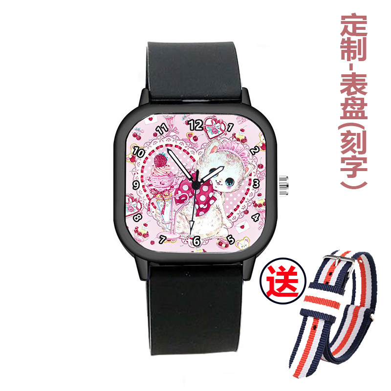 DIY方形手表兔兔猫咪照片订制刻字定制情侣来图定做节日数字腕表