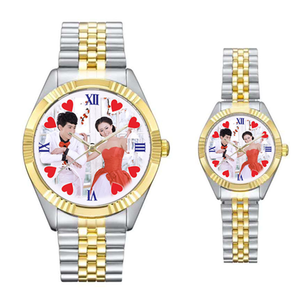 潮流情侣间金手表定制照片LOGO 时尚腕表定制DIY相片 背面刻字
