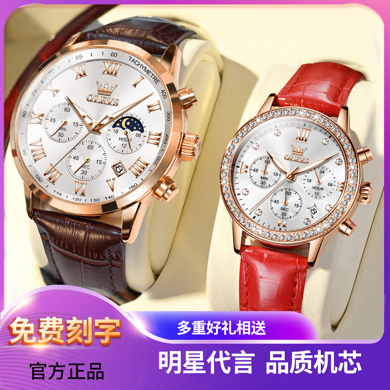 正品奥利妮1314刻字情侣手表一对价韩版潮流真皮带防水男女情侣表