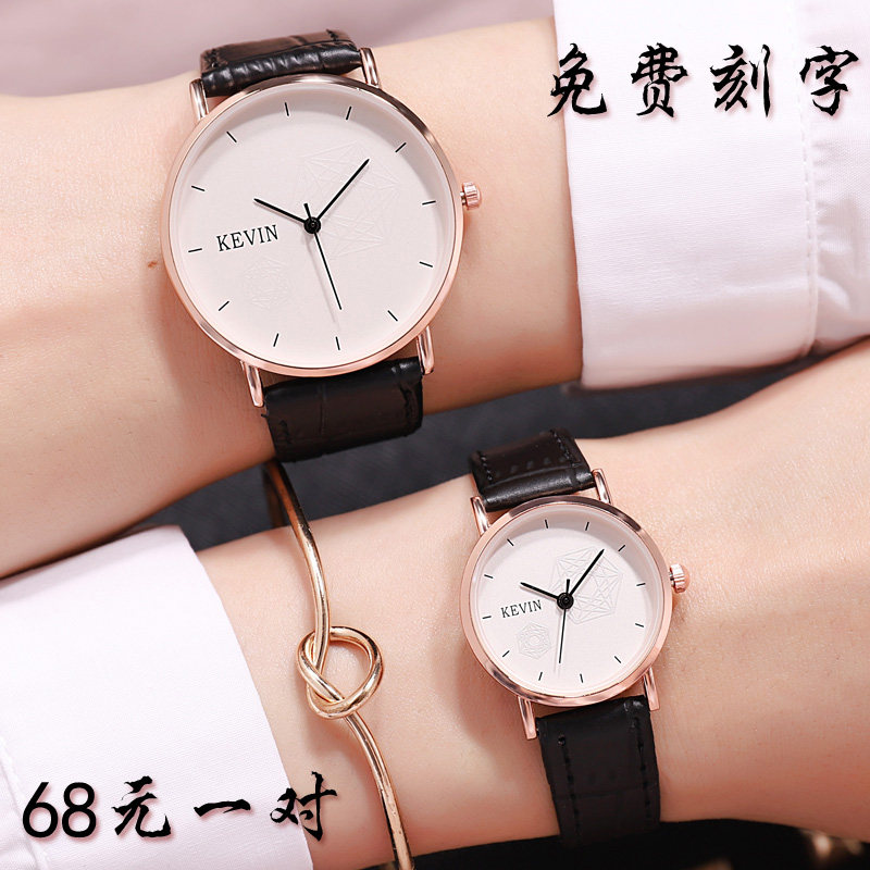简约创意男女学生潮流情侣皮带手表 定制刻字LOGO 生活防水