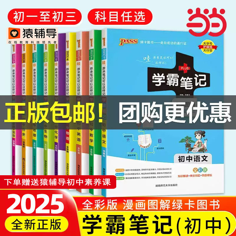 学霸笔记初中生物历史英语2025版PASS9本语文数学物理化学地理道德与法治初一初二初三七八九年级人教版教辅书绿卡知识点高中汇总