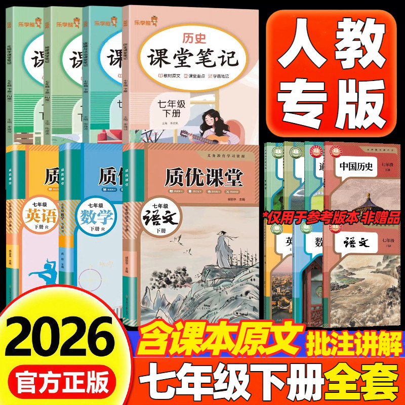 2026七彩课堂初中九年级下册语文英语数学化学物理地理历史人教版七年级八年级上册同步讲解教材全解中考划重点学霸预复习资料笔记