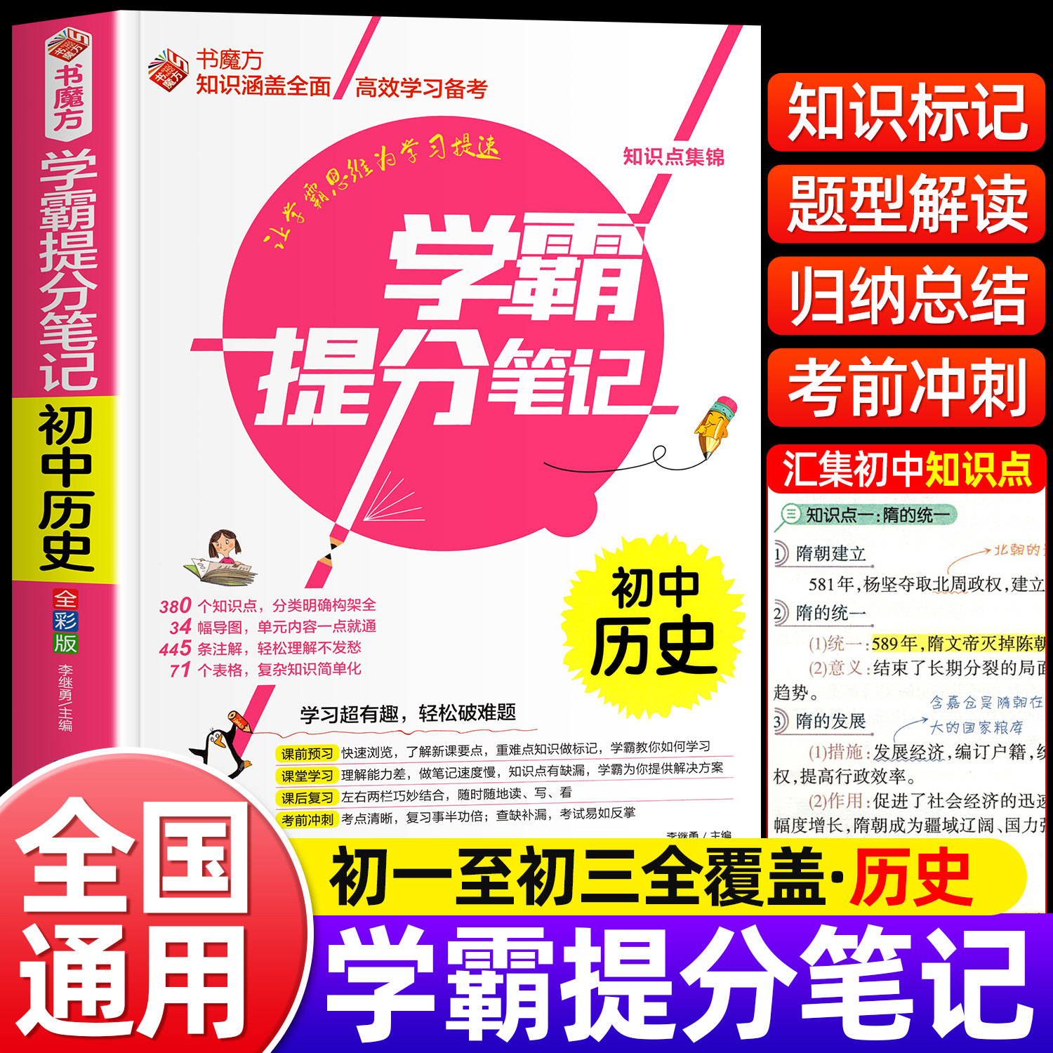 初中历史学霸提分笔记 初中生历史全彩版 课前预习复习初中通用一二三七八九789中考前冲刺学习复习资料知识点大全