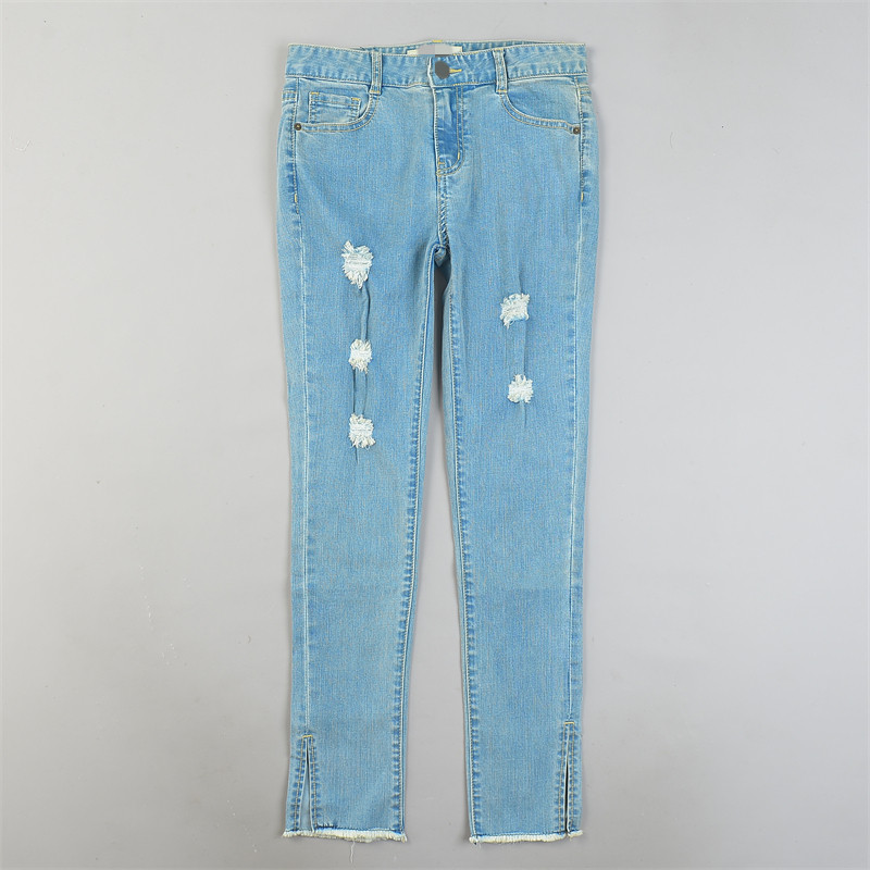 韩版中腰破洞牛仔裤女11.11L85015显瘦修身铅笔裤毛边开叉长裤子