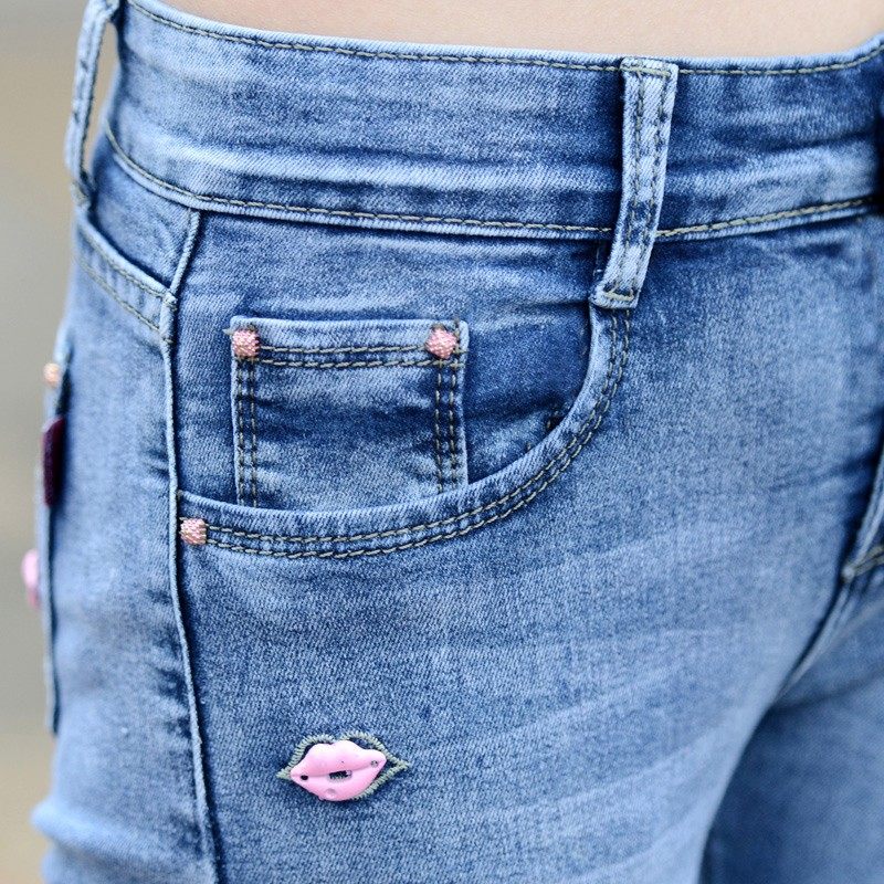 蕾丝边口袋春秋装韩版新款牛仔裤女长裤小脚铅笔裤显瘦破洞带钻裤