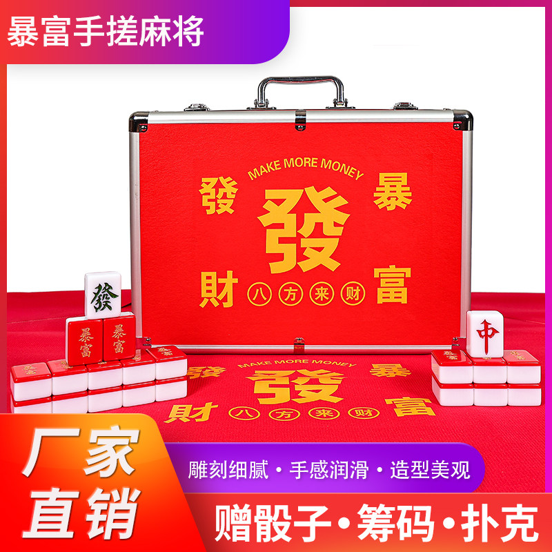 手搓麻将牌家用大红色暴富发财40/42/44定制年会福利聚会麻将礼品