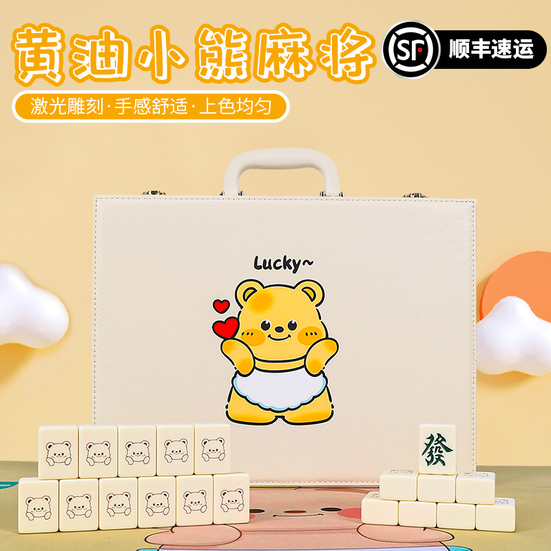 手搓麻将牌家用象牙色黄油小熊卡通可爱40/42/44定制聚会麻将礼盒