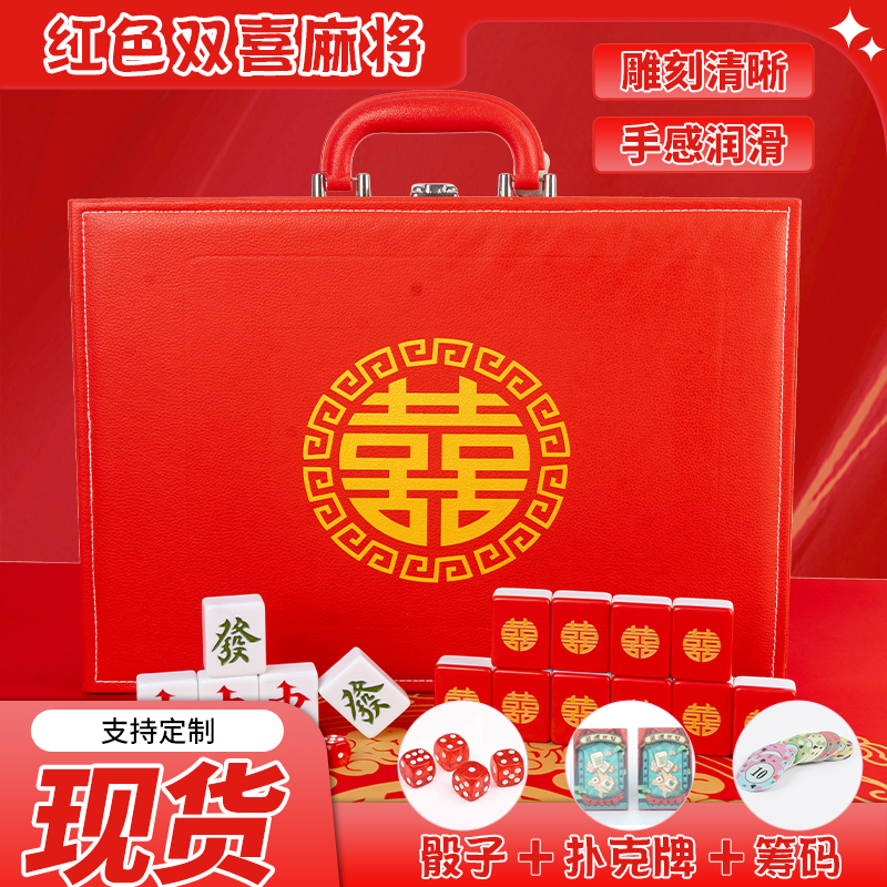 手搓麻将牌家用喜庆红色喜字麻将40/42/44中大号宿舍聚会卡通麻将