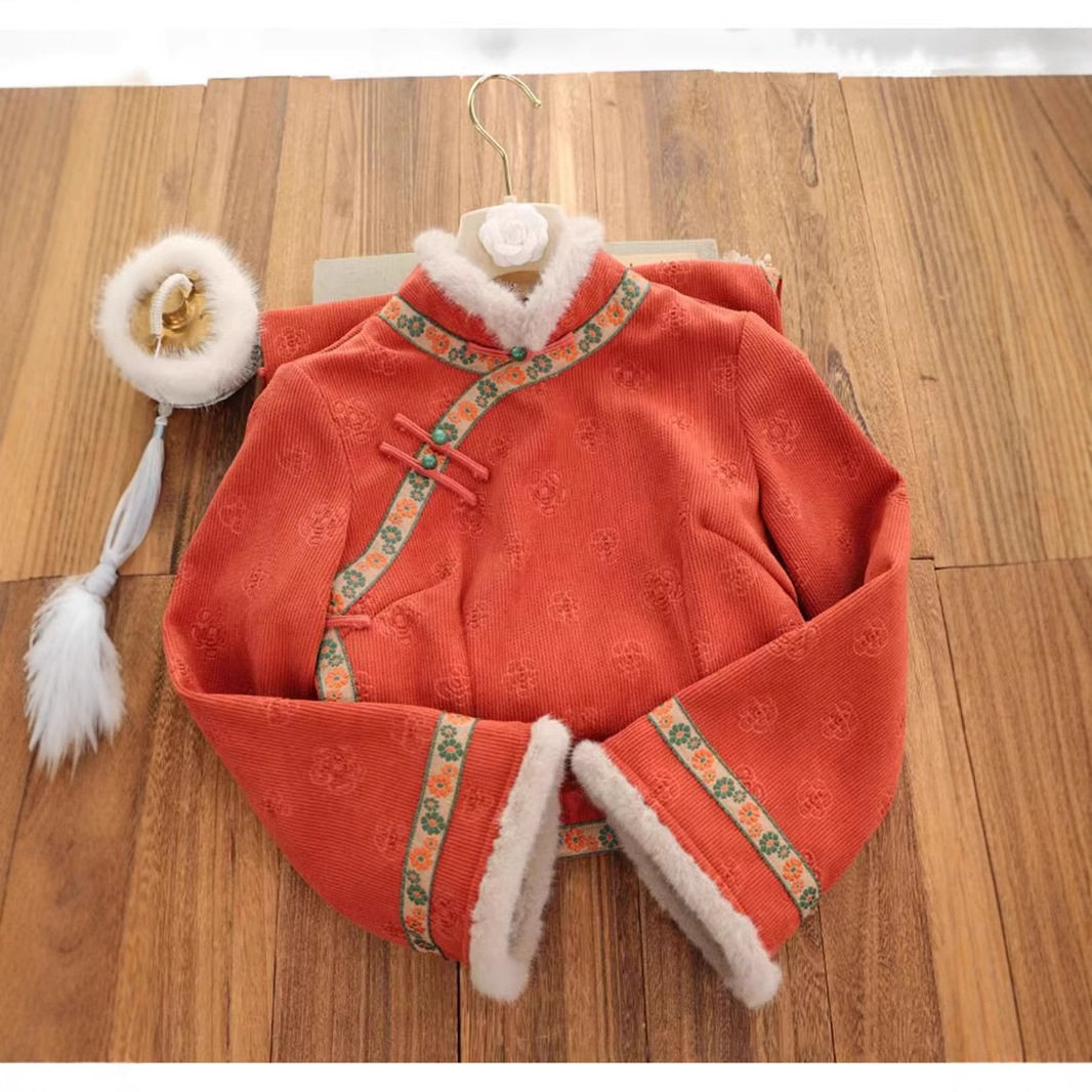 微笑向暖 复古风橘色毛毛领旗袍 2025年冬季保暖新中式日常通勤