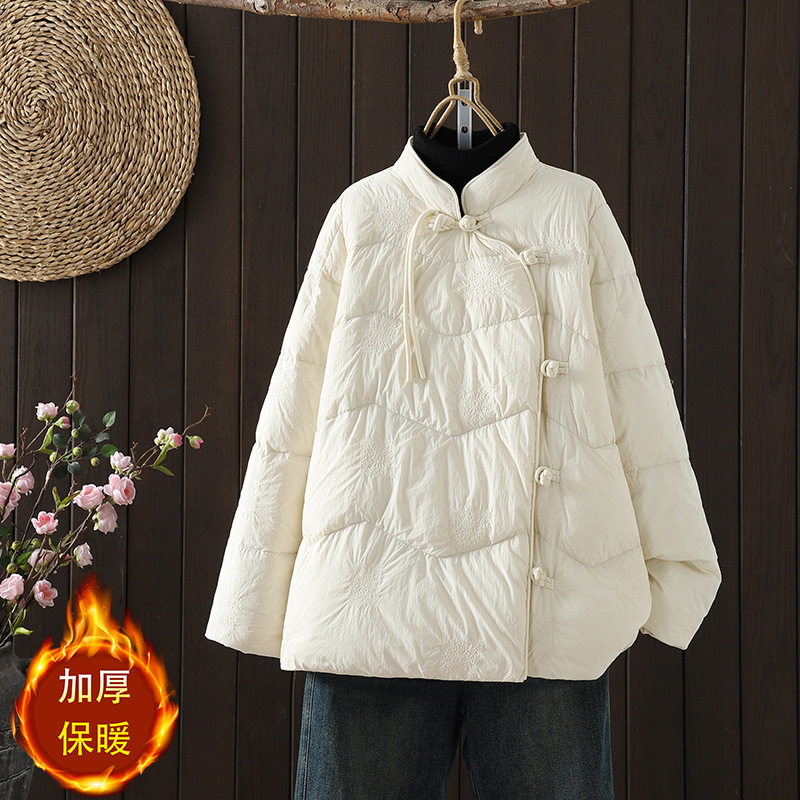 微笑向暖新中式国风冬宽松休闲立领刺绣棉衣盘扣复古文艺显瘦外套