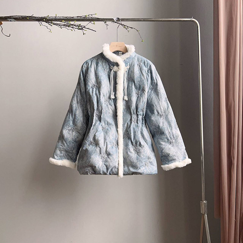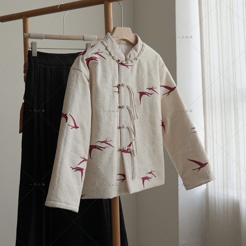 微笑向暖 新中式立体刺绣夹棉棉服 改良国风复古盘扣显瘦直筒外套