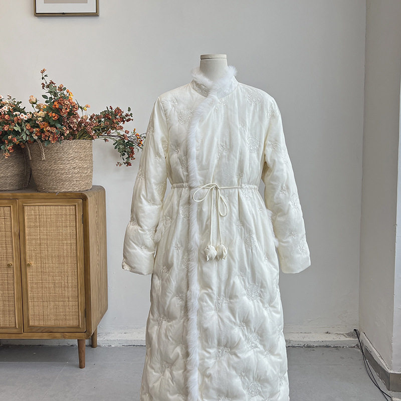 微笑向暖 国风中长款羽绒服女2024冬季小个子加厚保暖白鸭绒外套