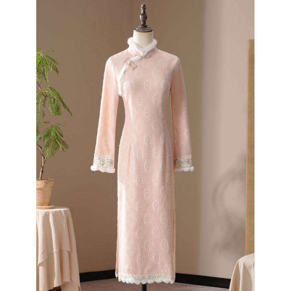 微笑向暖 新中式旗袍 冬装改良国风日常可穿显瘦百搭绝美连衣裙