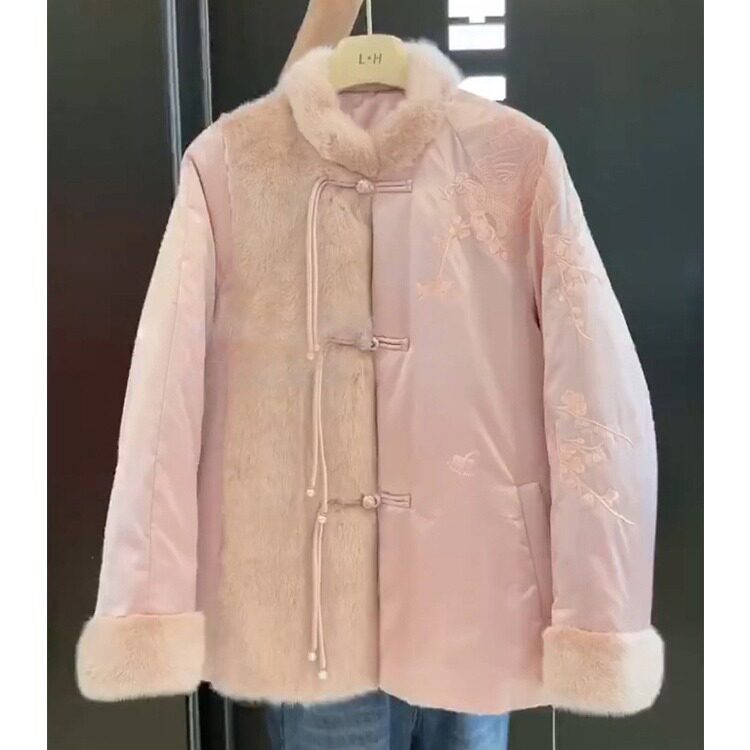 微笑向暖 新中式国风粉色盘扣棉服外套 改良百搭加厚棉衣棉袄秋冬