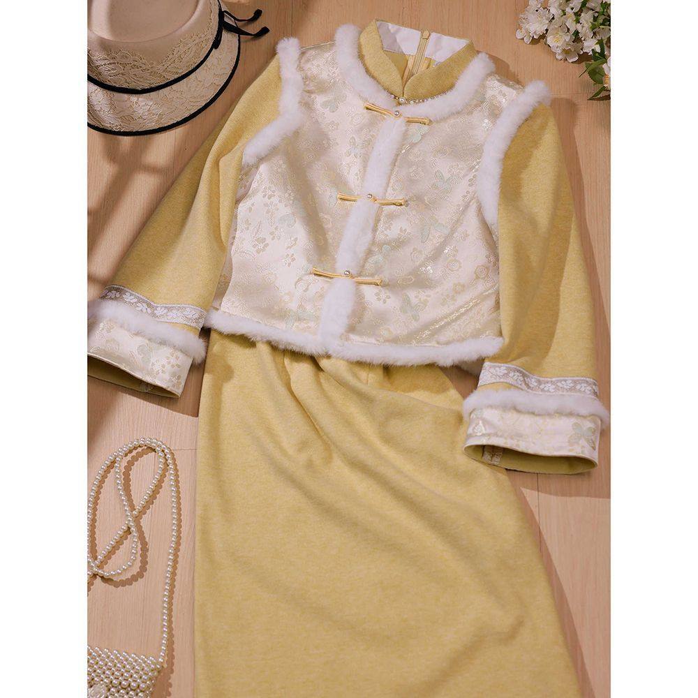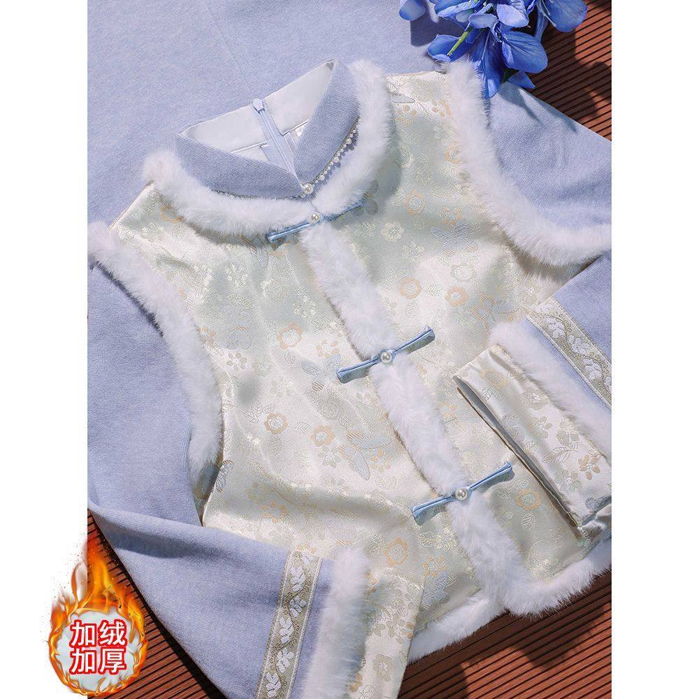 微笑向暖 2025百搭冬季新中式改良旗袍马甲套装 加绒温柔气质百搭