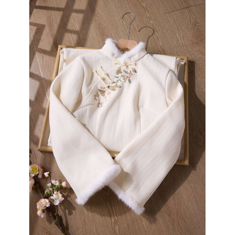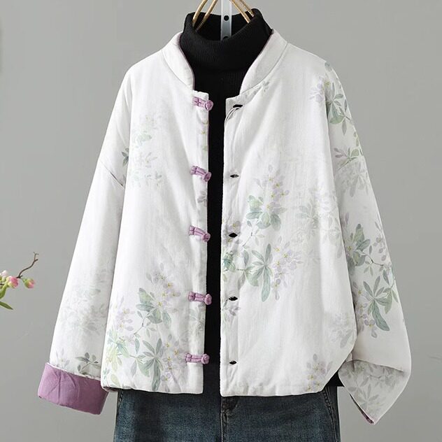 微笑向暖 宽松型立领长袖棉服 新中式改良国风重工冬季绣花外套