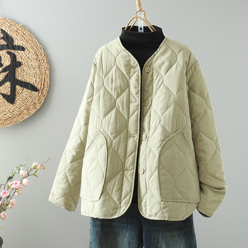 微笑向暖 复古国风棉服保暖夹棉长袖棉衣冬季纯色菱格显瘦外套女