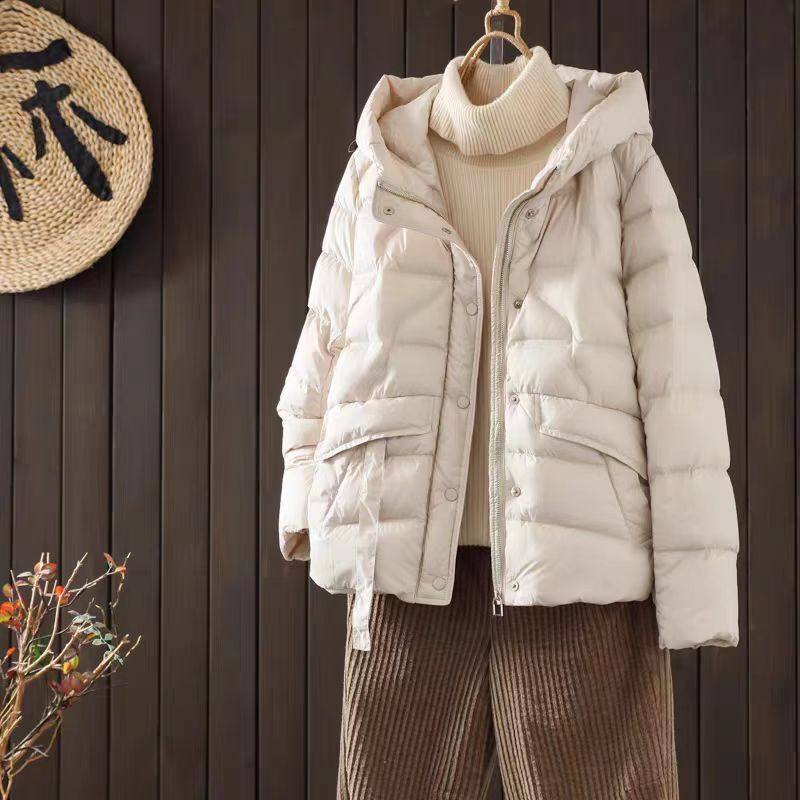 微笑向暖 秋冬轻薄时尚连帽90白鸭绒羽绒服 短款宽松休闲保暖外套