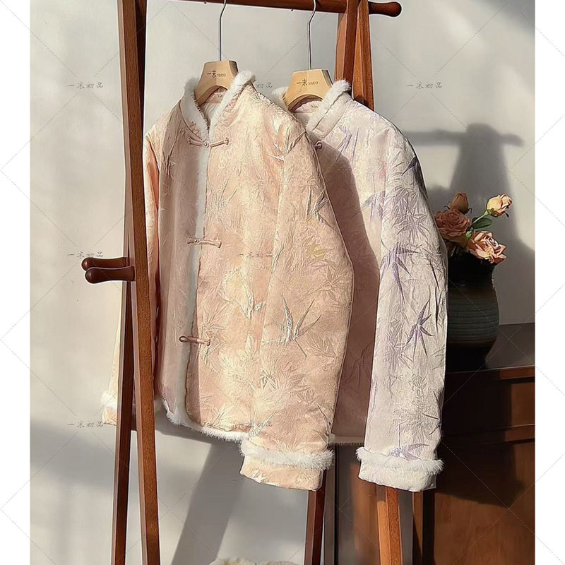 微笑向暖新中式汉服加棉复古重工刺绣提花织金雪尼尔长袖外套棉服