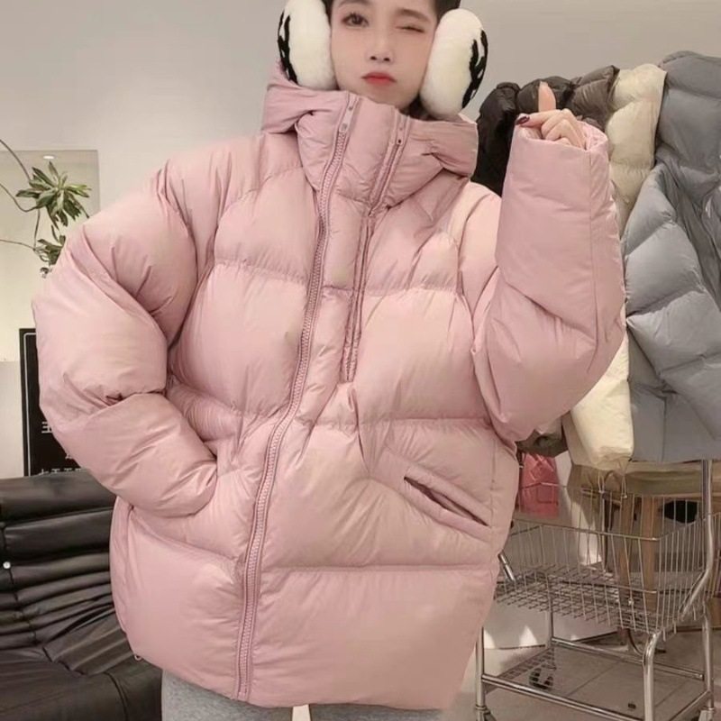 微笑向暖 冬新款韩版宽松白鸭绒连帽羽绒服休闲时尚保暖长袖外套