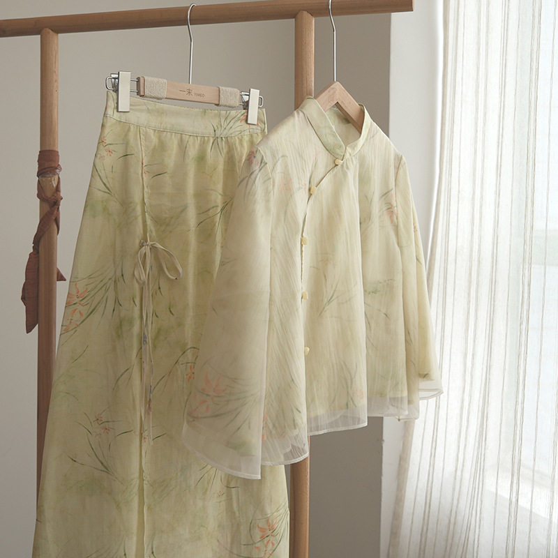 微笑向暖 复古轻国风印花两件套 小个子淑女气质温柔风改良套装