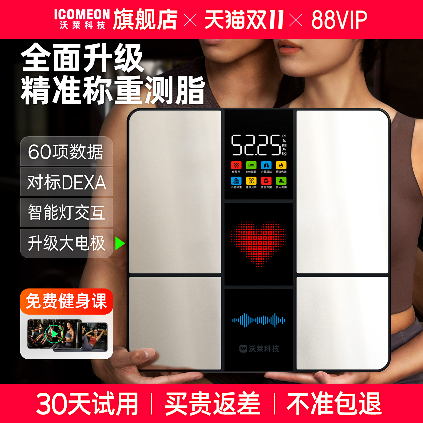 沃莱八电极体脂秤家用电子秤减肥专用智能精准体重秤健身房P7 MAX